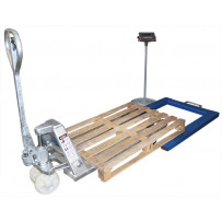 Conçu pour l'alimentaire et la chimie, ce transpalette peseur INOX 316 dispose d'une précision à 0,1% du poids pesé. Il est disponible avec imprimante en option.