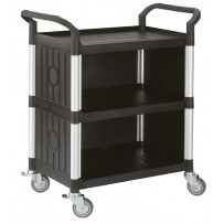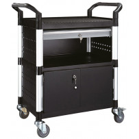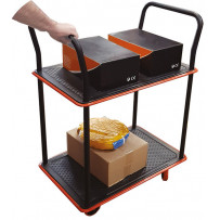 Cette servante permet de déplacer des charges de 120 kg. Elle est équipé de 4 roues, dont 2 pivotantes. Avec des coins arrondis et un revêtement anti-dérapant, elle permet de le transport de charge en toute sécurité.