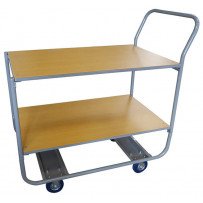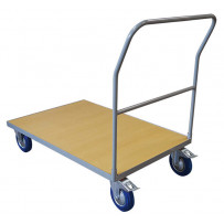 Ce chariot avec plateau bois (MDF) est disponible en 2 tailles de plateau bois: 1000 x 700 mm et 1200 x 800 mm. Sa capacité est de 500 kg. Il est expédié dans un emballage restreint.
